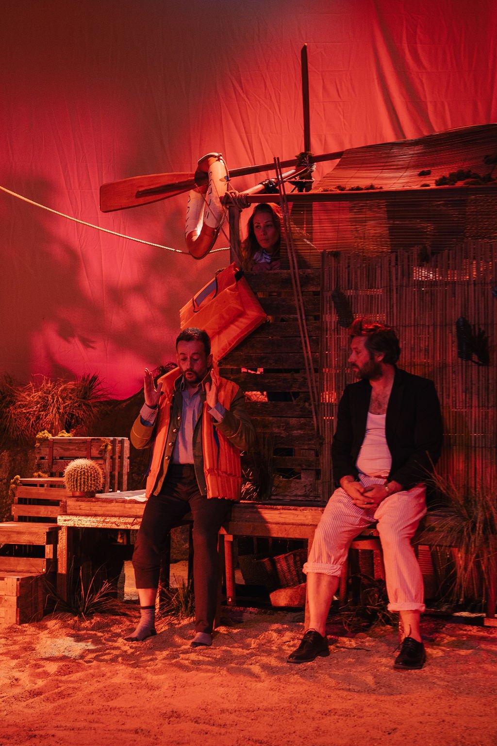 LA PETITE HUTTE - Mise en scène Julien Huchet-Ostini - Avec Julien Huchet-Ostini, Francisco Gil, Pauline Pelosi, Thomas Racine - Crédits photo : Production Linieres/Flora Vicens